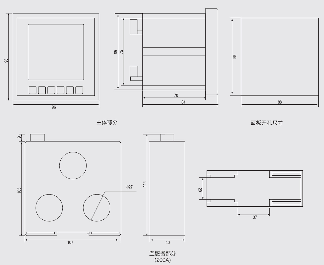 ● 变送器功能强大:内置4~20mA模拟量输出,可选多种电量(电流、电压、功率、电能),且范围可调。