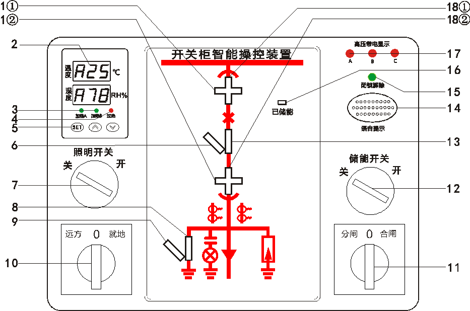 2 | 温湿度显示 | 11 | 分合闸开关 |