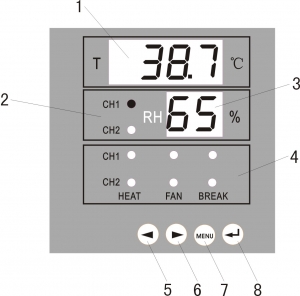 4 | 工作状态指示灯 | 指示灯亮 | 对应CH1/CH2/CH3等通道的工作状态,HEAT为加热指示,FAN为风扇鼓风,BREAK为加热故障 |