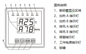 高温报警 | 当传感器测得的环境温度高于50℃时,高温报警灯亮;同时启动高温报警输出功能(选配)。 | |